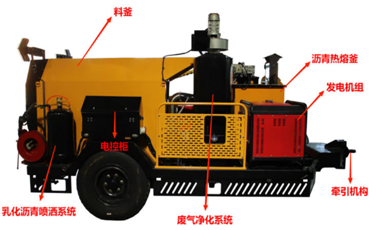 1、具有廢舊瀝青混合料加熱拌和(或舊料再生)、冷料加熱、瀝青攪拌、瀝青噴灑、路面灌縫等多種功能,能高效快速修補(bǔ)受損路面。